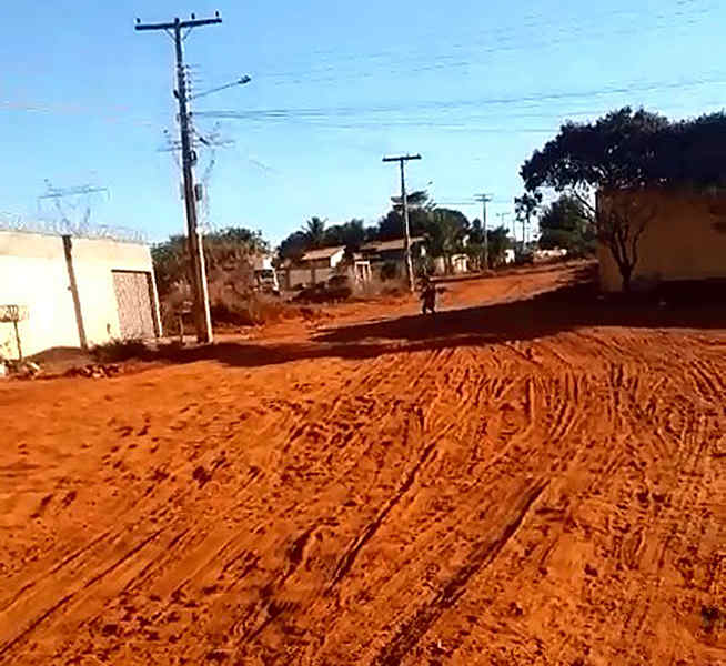 Imagem na Rua das Seringueiras, no Retiro dos Bosques, mostra poeira devido à falta de asfalto no setor | Foto: Leitor / Folha Z