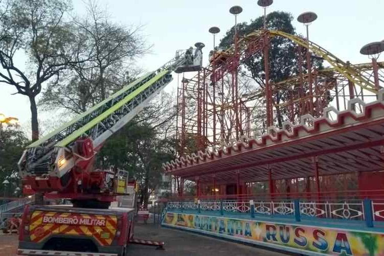 De acordo com as informações da corporação, um dos carrinhos do brinquedo ficou preso a cerca de 25 m após os freios travarem.