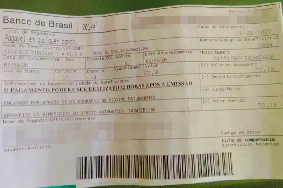 Um morador de Aparecida de Goiânia desconfiou de um golpe ao receber na semana passada um boleto “estranho” da Enel.