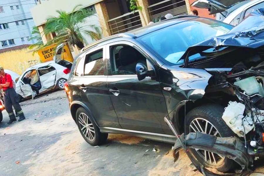 Nas imagens, é possível ver o momento em que um Mitsubishi preto, em alta velocidade, atinge o veículo da Prefeitura de Cristianópolis, um VW Gol branco, e na sequência colide em outro veículo que estava estacionado.