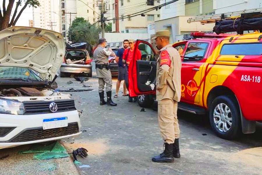 Nas imagens, é possível ver o momento em que um Mitsubishi preto, em alta velocidade, atinge o veículo da Prefeitura de Cristianópolis, um VW Gol branco, e na sequência colide em outro veículo que estava estacionado.