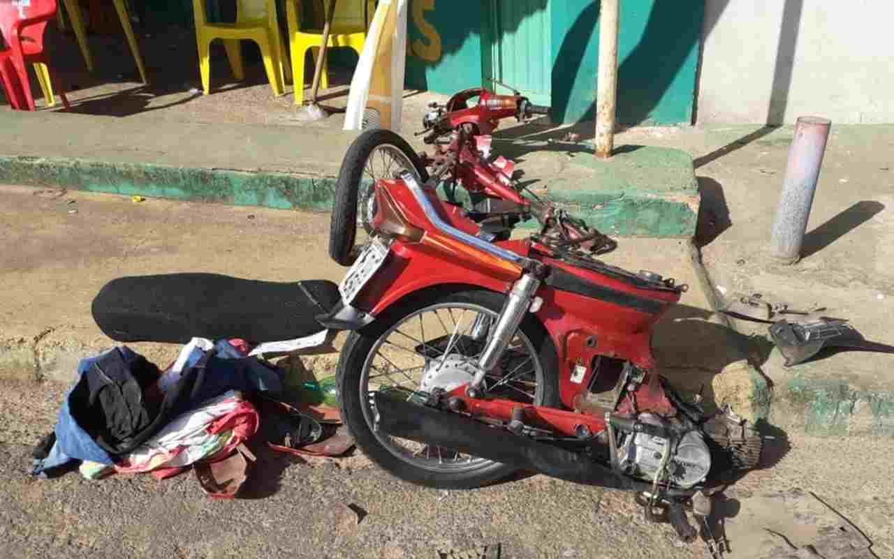 Após o choque, que partiu a moto ao meio, o condutor do veículo perdeu o controle da direção e bateu em outro carro e em um muro de uma casa.