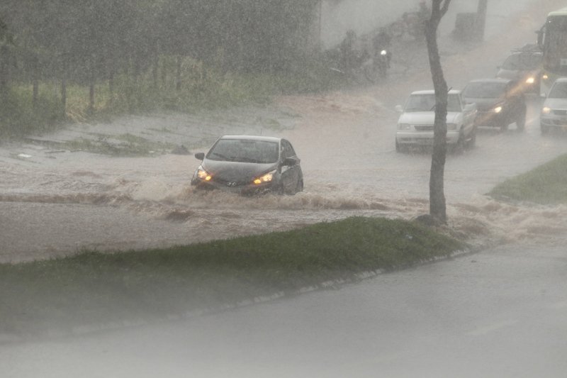 Um motociclista foi arrastado por uma enxurrada na Avenida Raposo Tavares, no Bairro Capuava, em Goiânia, durante a forte chuva que caía na noite da última 4ª feira (11).