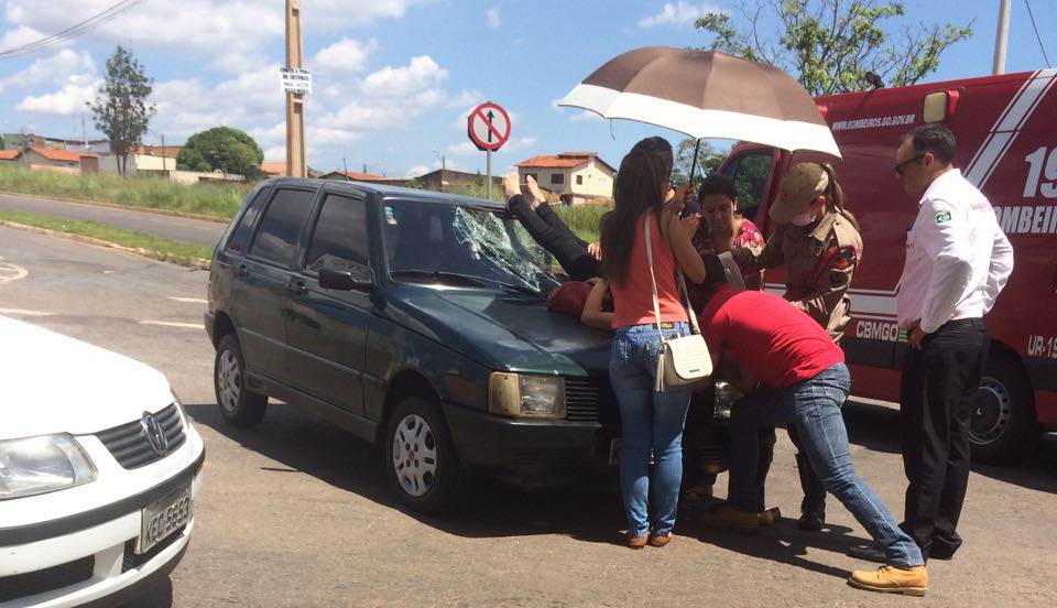 Um acidente grave assustou moradores do Jardim Nova Esperança na manhã desta segunda-feira, 10, em Goiânia. Uma motociclista colidiu com outro veículo e acabou sendo arremessada sobre o capô do carro. Veja vídeo abaixo.