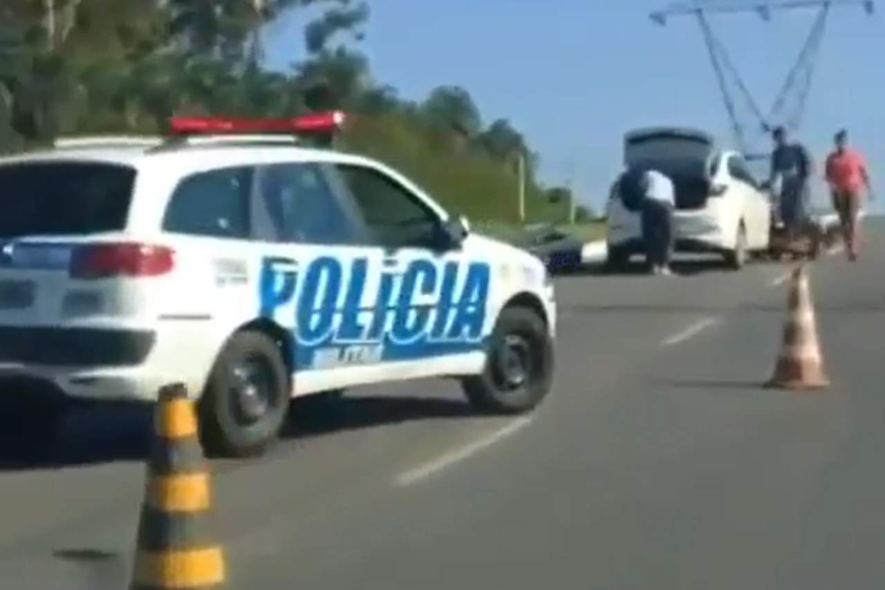 Os veículos, um deles um HB20 Sedan, ficaram parcialmente danificados com o acidente.