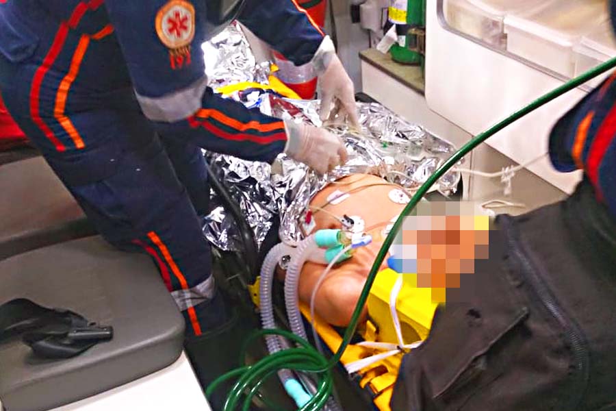 Devido à gravidade dos ferimentos, porém, uma unidade avançada do Serviço de Atendimento Móvel de Urgência (Samu) de Aparecida de Goiânia teve que ser acionado para encaminhá-lo, intubado, para o Hospital de Urgências de Goiânia (Hugo).