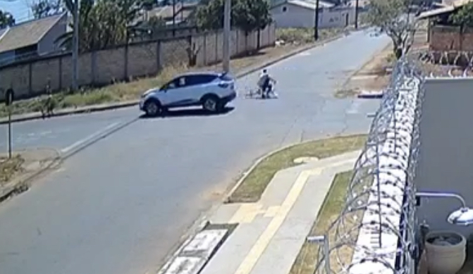 Imagens de segurança de uma casa próxima ao local flagraram o momento do atropelamento.