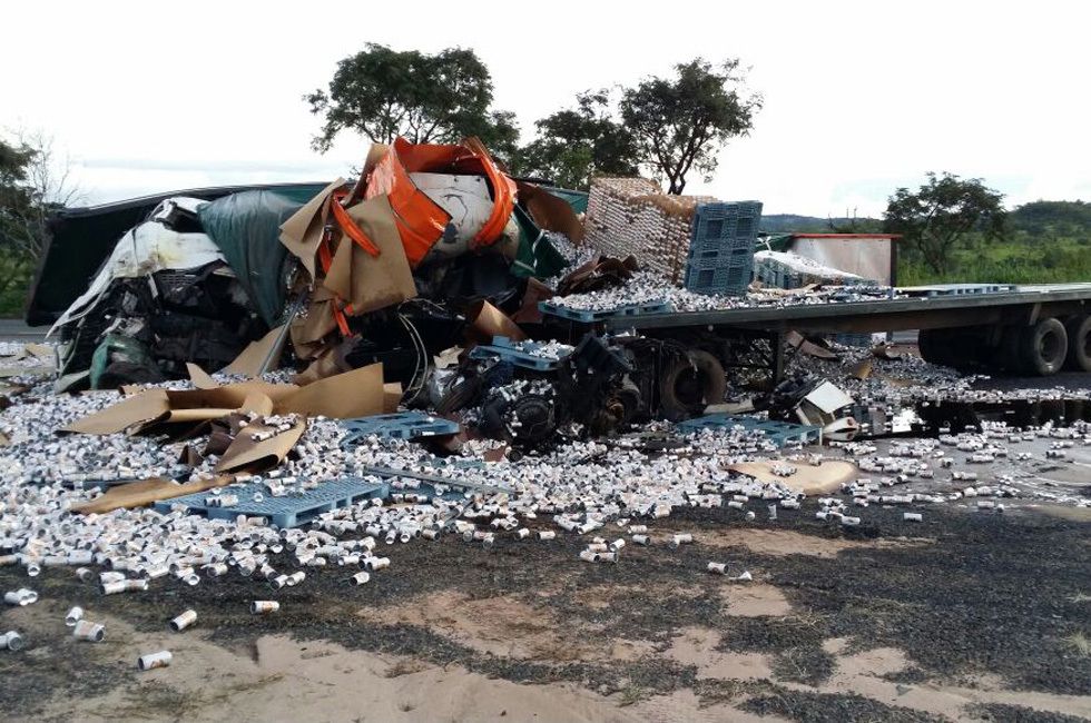 De acordo com a Polícia Rodoviária Federal (PRF), as duas carretas baterem de frente. Ambas estavam carregadas, uma com latas de cerveja e a outra com combustível.