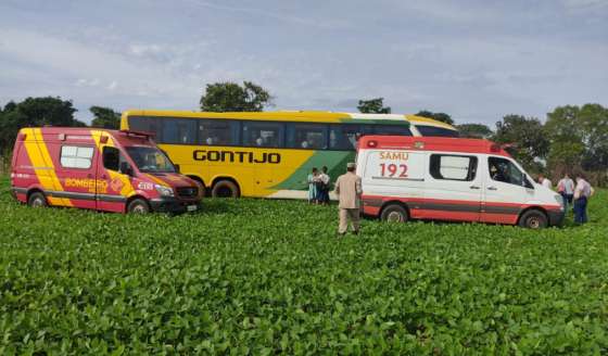 O ônibus chegou a se chocar contra um poste ao entrar na lavoura, mas nenhum passageiro se feriu.