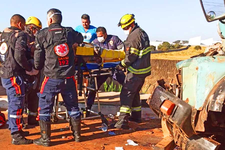 Motoristas sofrem fraturas graves em batida de caminhões em Anápolis
