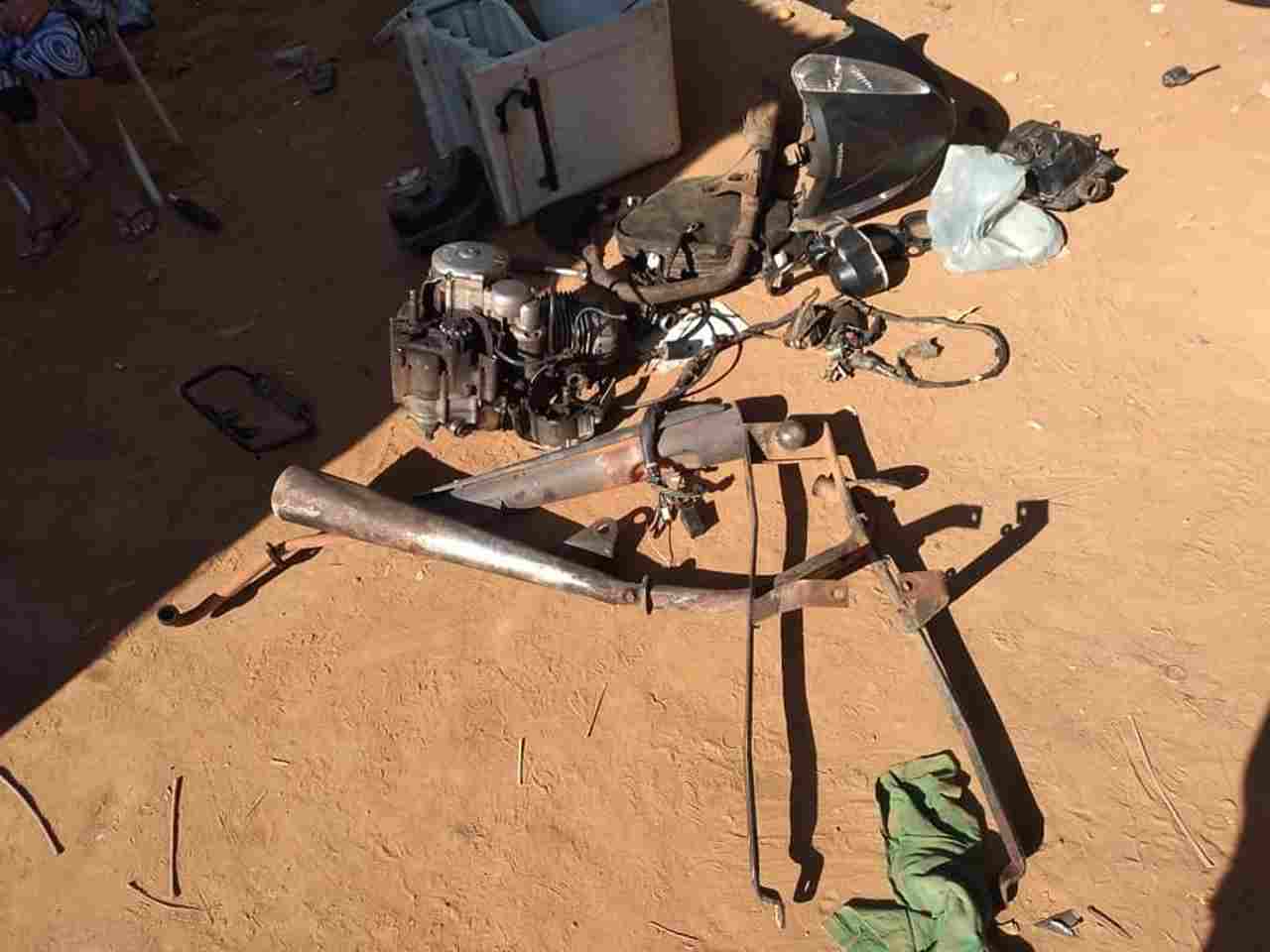 Várias peças de motos desmanchadas foram encontradas e mais 2 motos com alerta de furto, além da outra que já estava com o suspeito durante a abordagem.