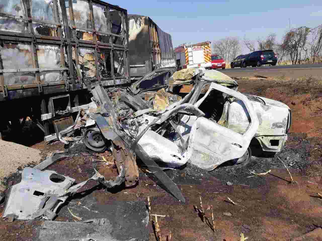 Segundo a Polícia Rodoviária Federal (PRF), os veículos colidiram frontalmente, ocasionando a explosão e incêndio do automóvel de passeio.