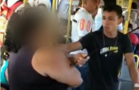 Uma mulher foi atingida por uma flecha enquanto estava dentro de um ônibus em Belém, no Pará. | Foto: Reprodução/TV Liberal