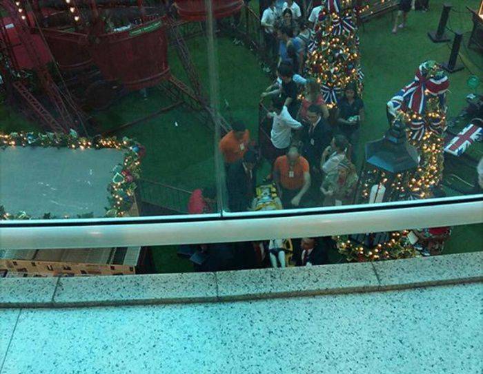 Vítima é socorrida dentro do shopping (Foto: Reprodução)