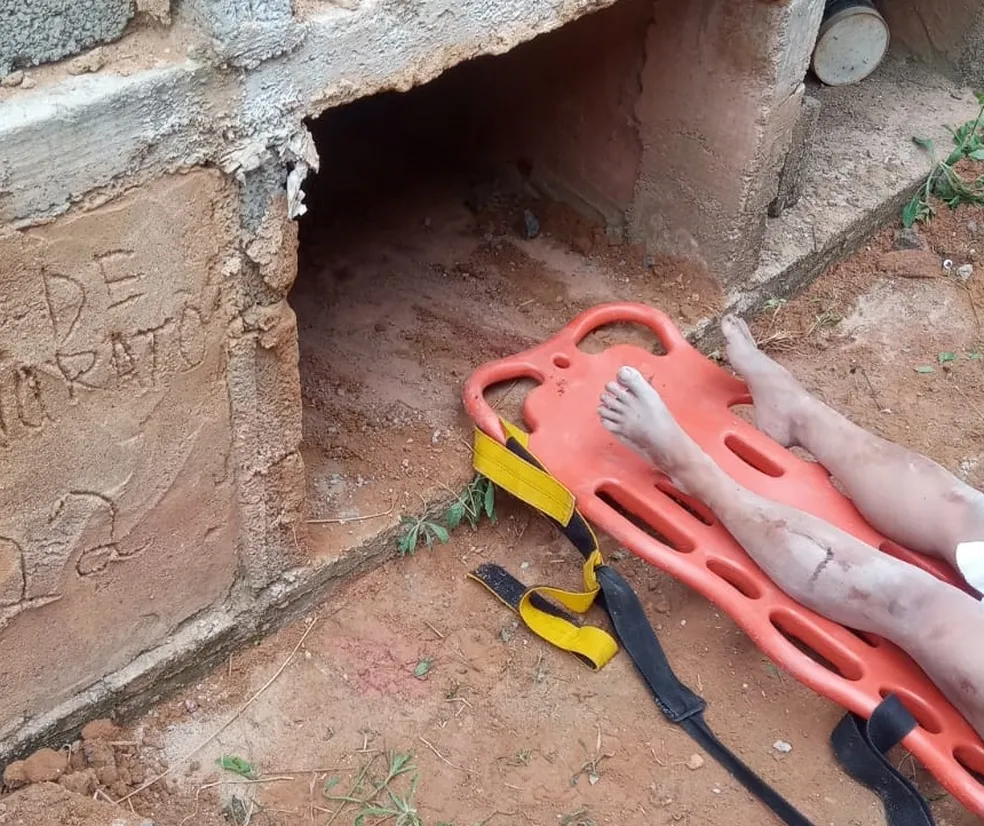 Ao chegar ao cemitério, militares arrombaram a gaveta mortuária e socorreram a vítima.