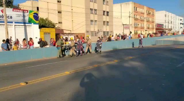 Uma mulher foi resgatada pelo Corpo de Bombeiros na tarde deste domingo (25) após cair do viaduto da Vila Brasília, em Aparecida de Goiânia.
