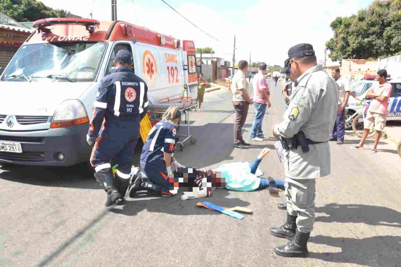 Uma motociclista ficou ferida após um grave acidente envolvendo a moto em que ela estava e um carro no cruzamento das Avenidas Gaivotas com Quiruá, no Setor Colina Azul, em Aparecida de Goiânia.