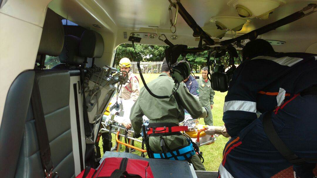 Uma das vítimas foi transportada por uma equipe do Corpo de Bombeiros a unidade de saúde| Foto: Reprodução/Corpo de Bombeiros