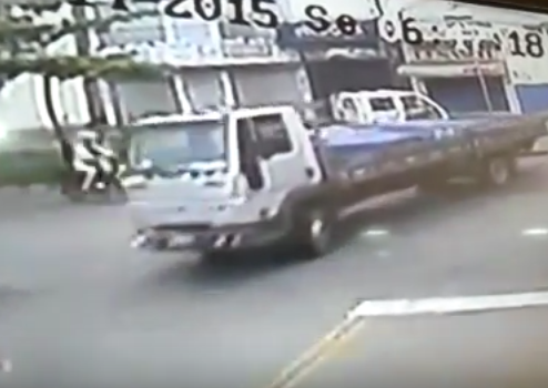 A batida aconteceu no começo da manhã e uma câmera de monitoramento flagrou o momento da colisão. Nas imagens é possível ver que o caminhão tentou fazer uma conversão à esquerda, mas a moto, que descia a avenida em alta velocidade, não conseguiu frear e bateu forte na traseira do veículo.