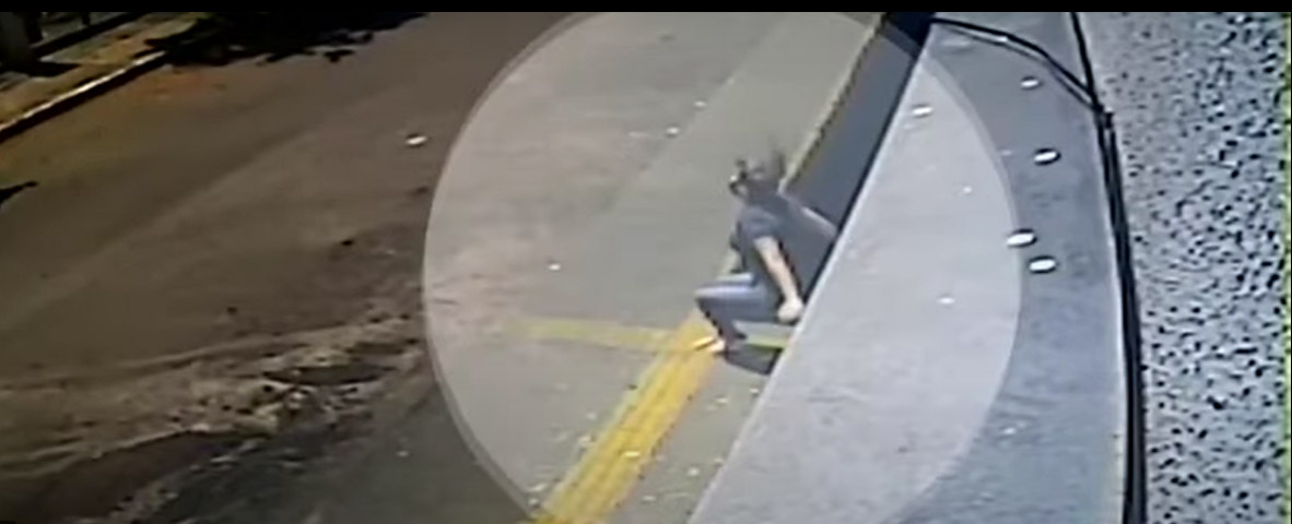 Câmeras de segurança registraram o momento em que ela cai da janela.