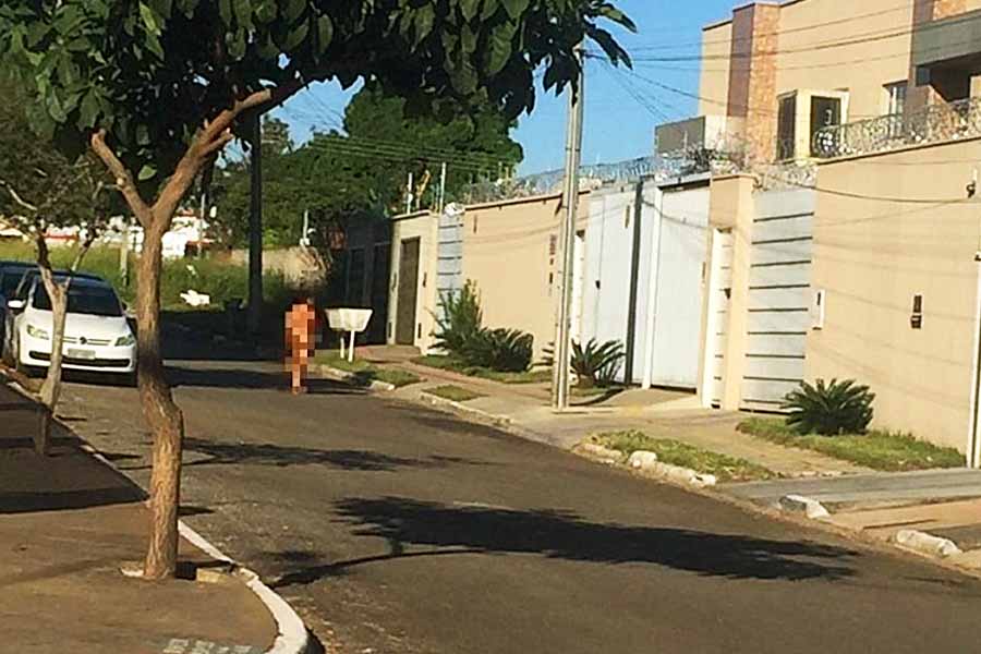 Sem roupa e usando apenas uma máscara de proteção, uma mulher foi flagrada enquanto andava pelo Residencial Moinho dos Ventos, em Goiânia.