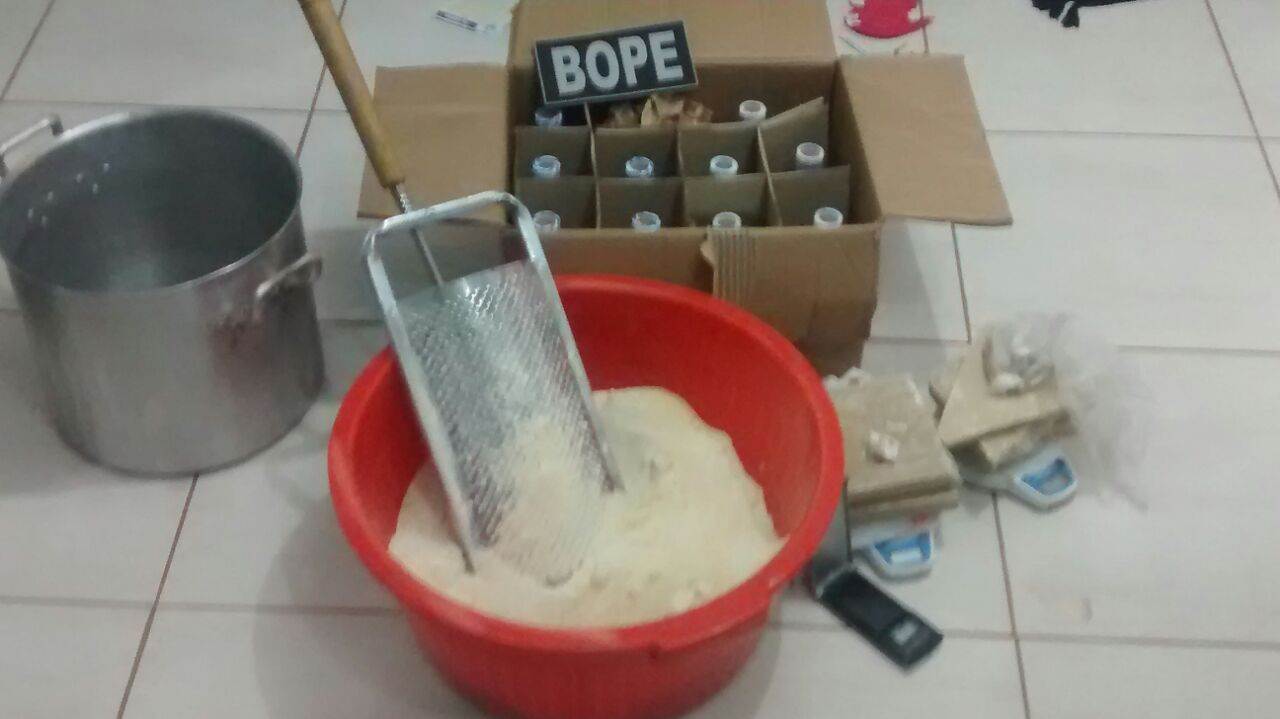 Segundo informações da Polícia Militar (PM), com as suspeitas foram encontrados oito quilos de pasta base de cocaína, uma prensa e outros materiais utilizados no refino de drogas.