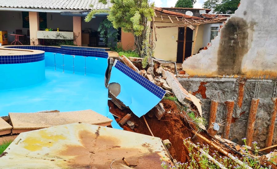 SUSTO: Muro de casa desaba e piscina transborda durante obras no lote vizinho em Goiânia