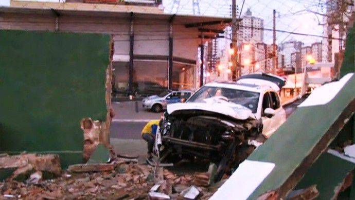 Muro do Estádio da Serrinha foi parcialmente destruído na madrugada desta quarta-feira, 7, por um carro, no cruzamento da Avenida 85 com a Rua T-62, no Setor Bela Vista, em Goiânia.