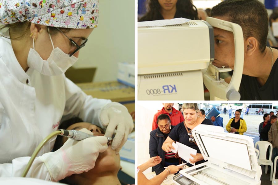 - consultas de oftalmologia, odontologia e testes rápidos de Doenças Sexualmente Transmissíveis,
