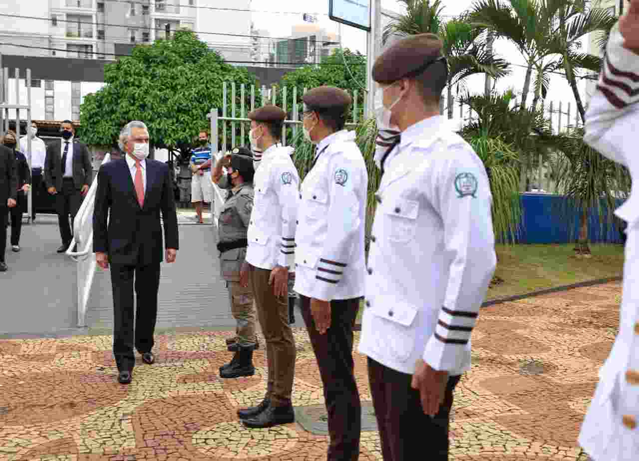 O governador Ronaldo Caiado participou da inauguração da reforma no Colégio Estadual da Polícia Militar de Goiás (CEPMG) unidade Hugo de Carvalho, nesta 5ª feira (11).