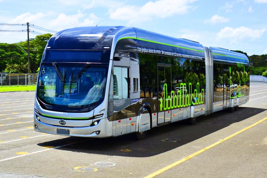 Segundo a fabricante do veículo, cada ônibus elétrico deixa de emitir cerca de 110 toneladas de gás carbônico por ano.