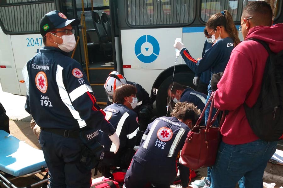 Ônibus passa por cima da perna de pedestre em Aparecida de Goiânia