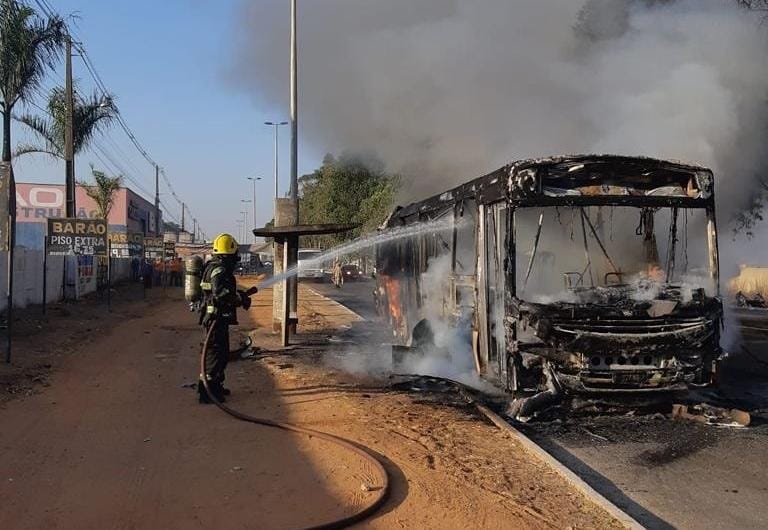 Um ônibus do transporte coletivo pegou fogo na manhã desta 2ª feira (20) na GO-040, próximo ao setor Aeroporto Sul, em Aparecida de Goiânia.
