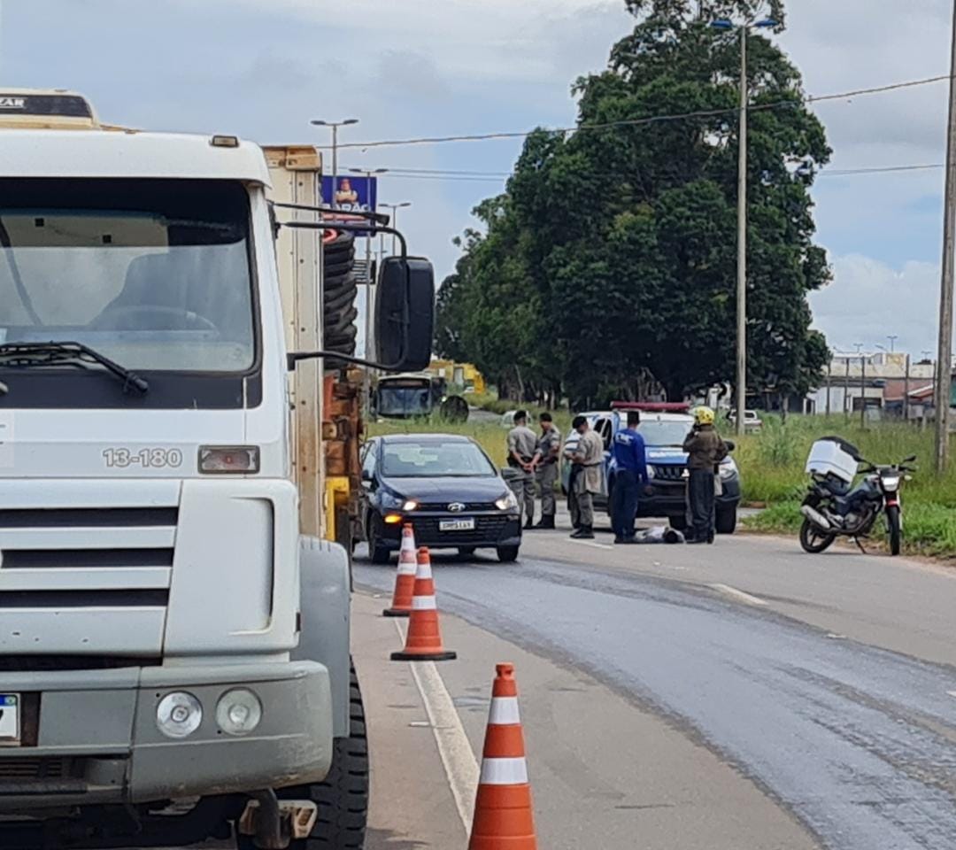 Uma criança de 3 anos e o pai caíram de um caminhão em movimento na GO-040, perímetro urbano de Aparecida de Goiânia.
