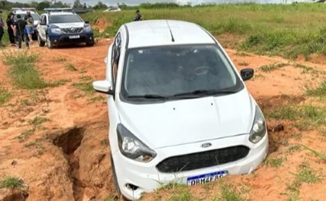 O carro foi achado em uma vala no Bairro Morada do Bosque, em Sorriso (MT).