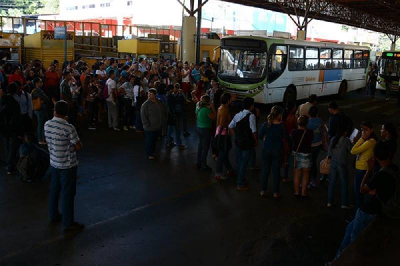 Manifestantes fecham Terminal Praça da Bíblia (Foto: Edison Pelikano/ Diário da Manhã)