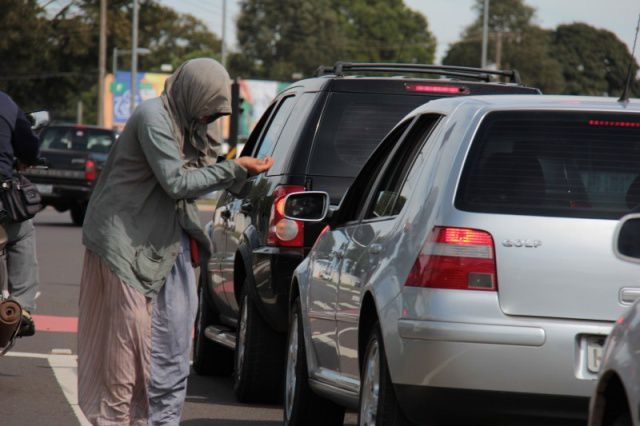 Pedintes são comuns nas grandes avenidas das capitais como Goiânia; polícia, porém, recomenda que motoristas não deem esmola de qualquer natureza (Foto: Reprodução)