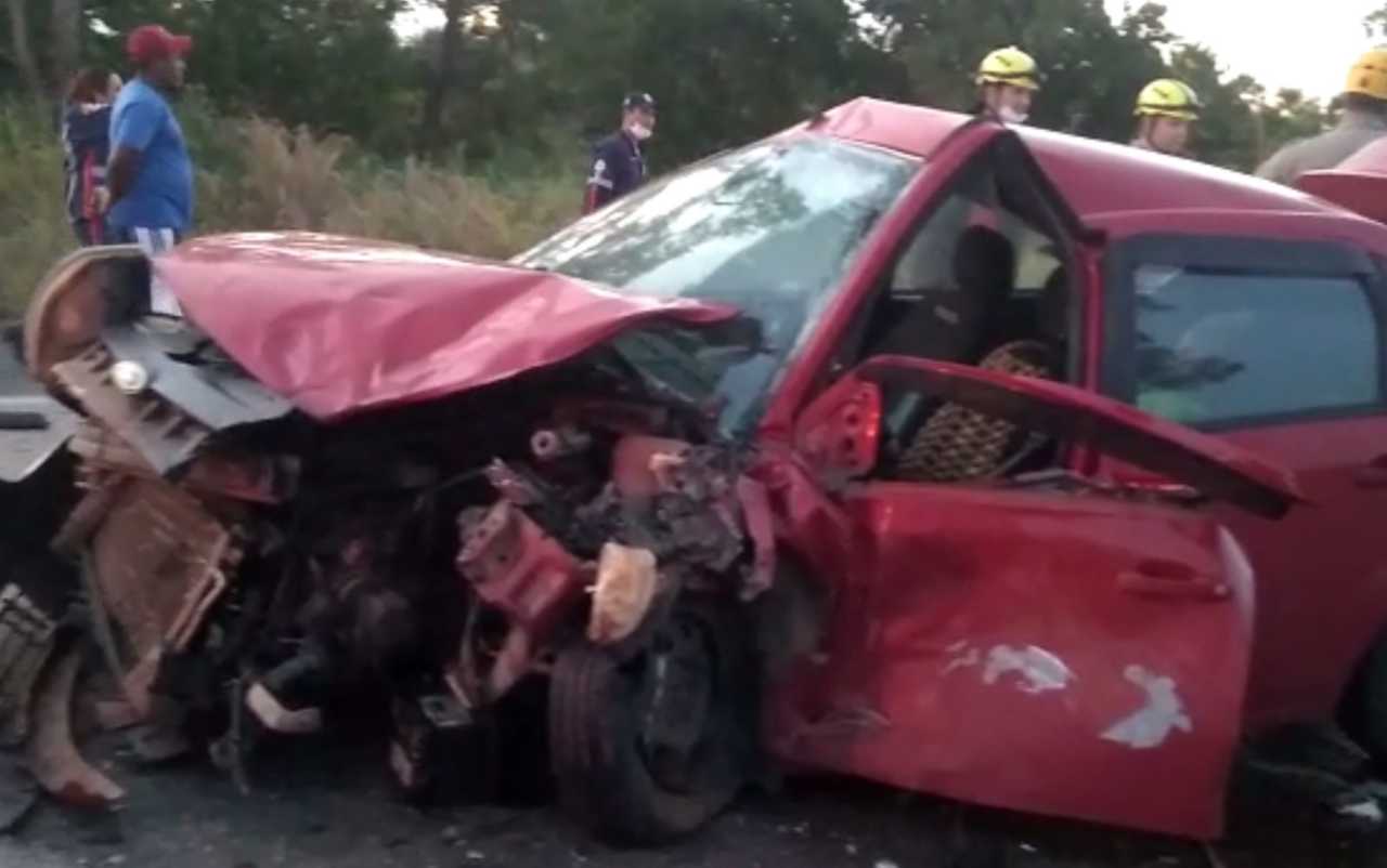 As 2 vítimas fatais estavam em um mesmo carro branco, que se chocou de frente contra outro veículo.
