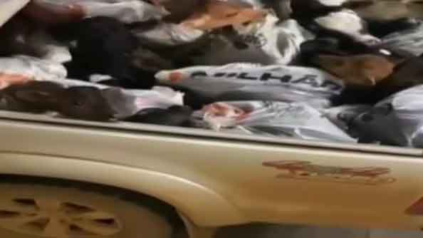 Os animais, com sinais de maus-tratos, foram achados amarrados e dentro de rações de sacos pela corporação na noite desta 5ª feira (11).