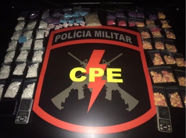A equipe se deslocou até a residência do suspeito, no Setor Aeroporto Sul 2, onde encontrou mais 3.778 comprimidos da droga, 1 pacote médio de uma substância não identificada, 12 papelotes de substância branca e 2 balanças de precisão.