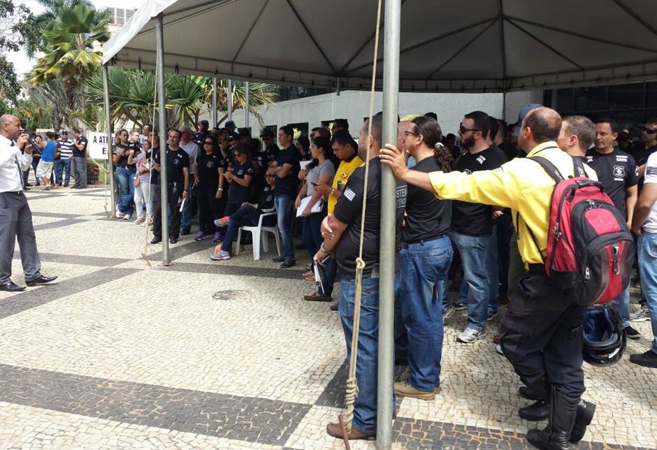 Centenas de policiais federais, civis, guardas municipais, agentes penitenciários e de trânsito participaram de manifestação na manhã desta quarta-feira, 21, em frente à sede da Polícia Federal (PF), no Setor Bela Vista, em Goiânia. O ato é contra a proposta de reforma da previdência (PEC 287/16) que exclui a categoria da aposentadoria especial.