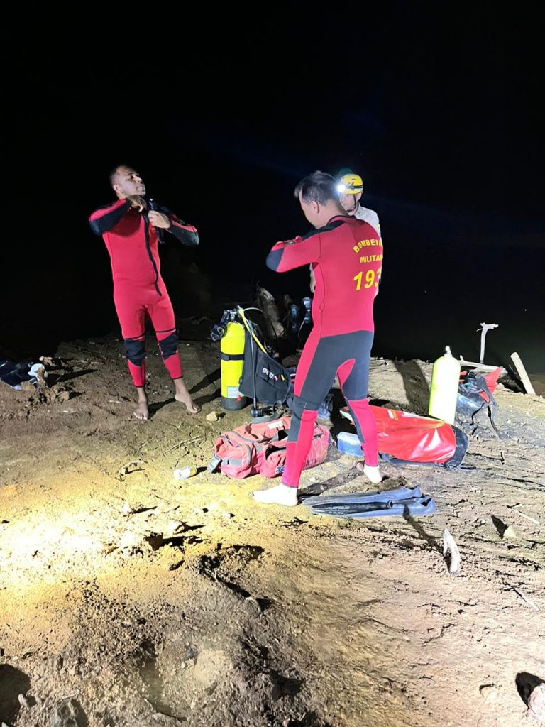 2 mergulhadores adentraram no rio e no final da noite, por volta das 23 horas, os corpos foram encontrados.