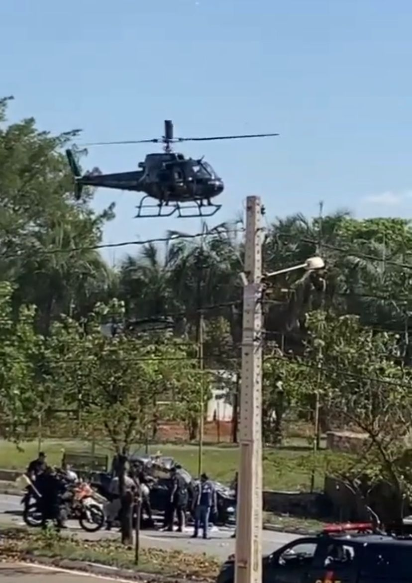 Um helicóptero do Grupo de Rádio Patrulhamento Aéreo (GRAER) foi até o local para fornecer apoio aos agentes.