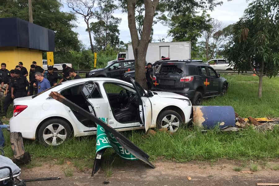 Após perseguição em alta velocidade, a viatura da Rotam e o veículo acabaram colidindo na altura da base da Polícia Rodoviária Federal.