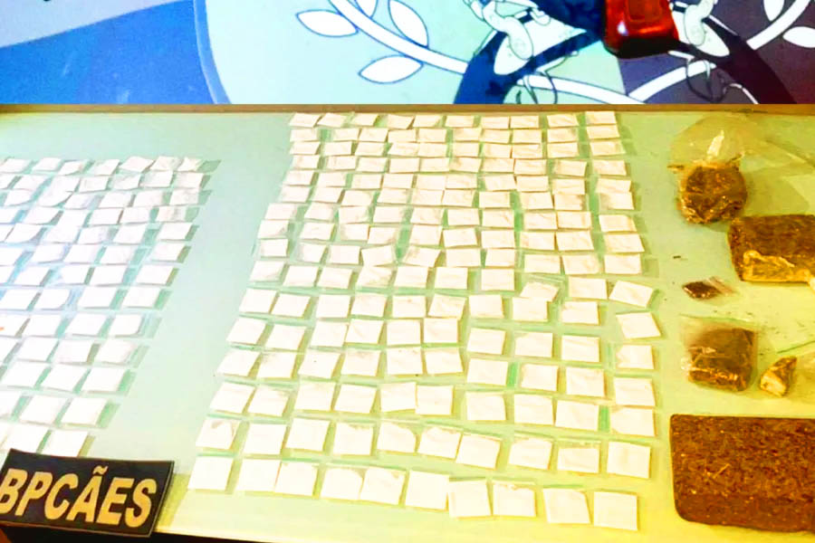 Na casa, foram encontradas porções de cocaína e maconha prontas para venda, além de uma pistola e um revólver.