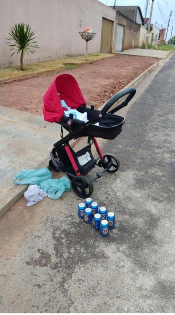 O carinho de bebê onde estava a criança foi abandonado próximo ao corpo da vítima.