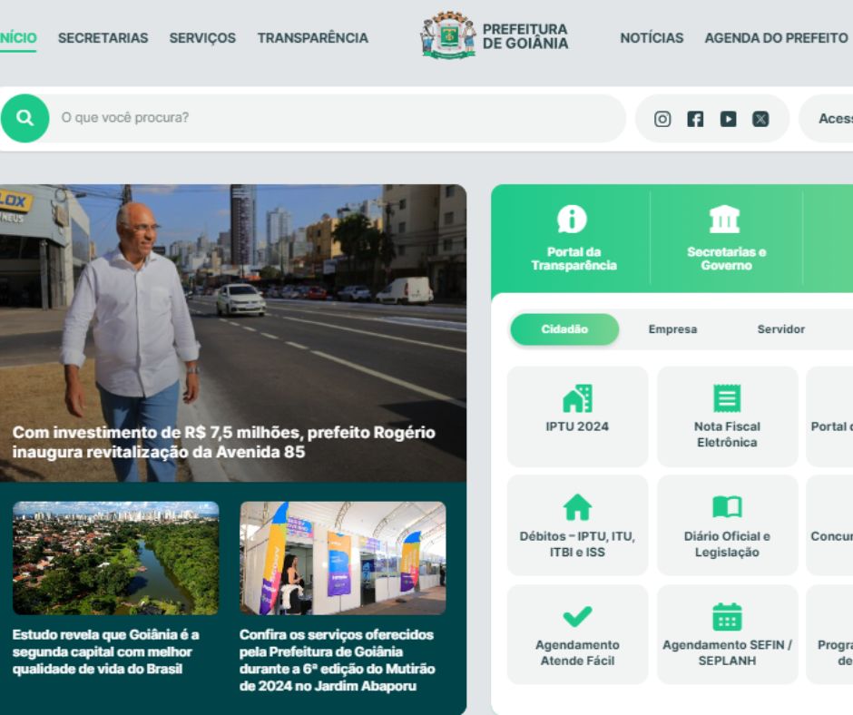Site da prefeitura de Goiânia neste momento 04/07 | Foto: Reprodução