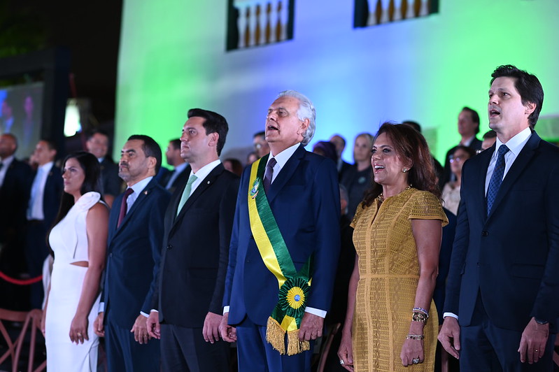Ao discursar, o pessedista elogiou o trabalho de Caiado à frente da Segurança Pública e da Educação.