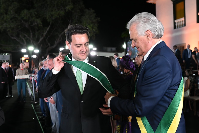 Presidenciáveis: Ratinho Jr. é recebido por Caiado e ganha comenda em Goiás