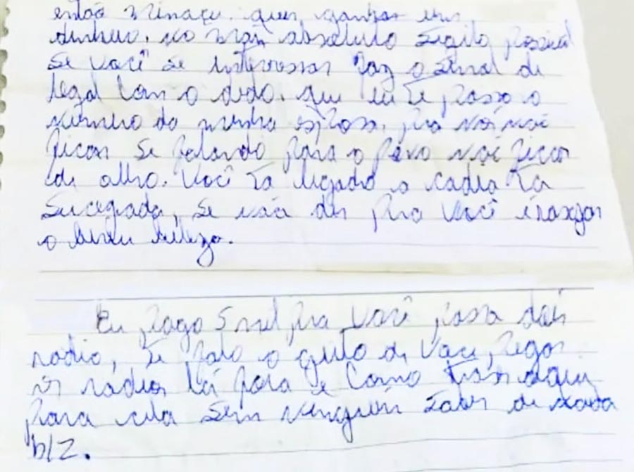 “Quer ganhar um dinheiro no mais absoluto sigilo? Se você se interessar, faz o sinal de legal com o dedo. Eu pago 5 mil pra você passar dois rádios”, escreveu o detento.